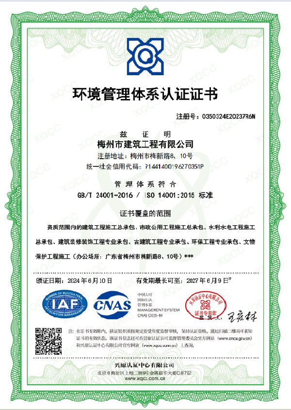 環(huán)境管理體系認(rèn)證證書